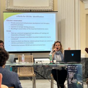Tra i relatori, la dottoressa Valentina Rossi, Prima ricercatrice di diritto internazionale del Cnr Iriss, che ha affrontato il tema dei nuovi strumenti di natura spaziale (cd. “area-based management tools”) per la tutela della biodiversità marina e la gestione sostenibile delle risorse biologiche marine. La dottoressa Valentina Rossi ha approfondito questa tematica nell’ambito del Progetto PNRR per la creazione del “National Biodiversity Future Center”, Spoke 2 “Solutions to reverse marine biodiversity loss and manage marine resources sustainably”.